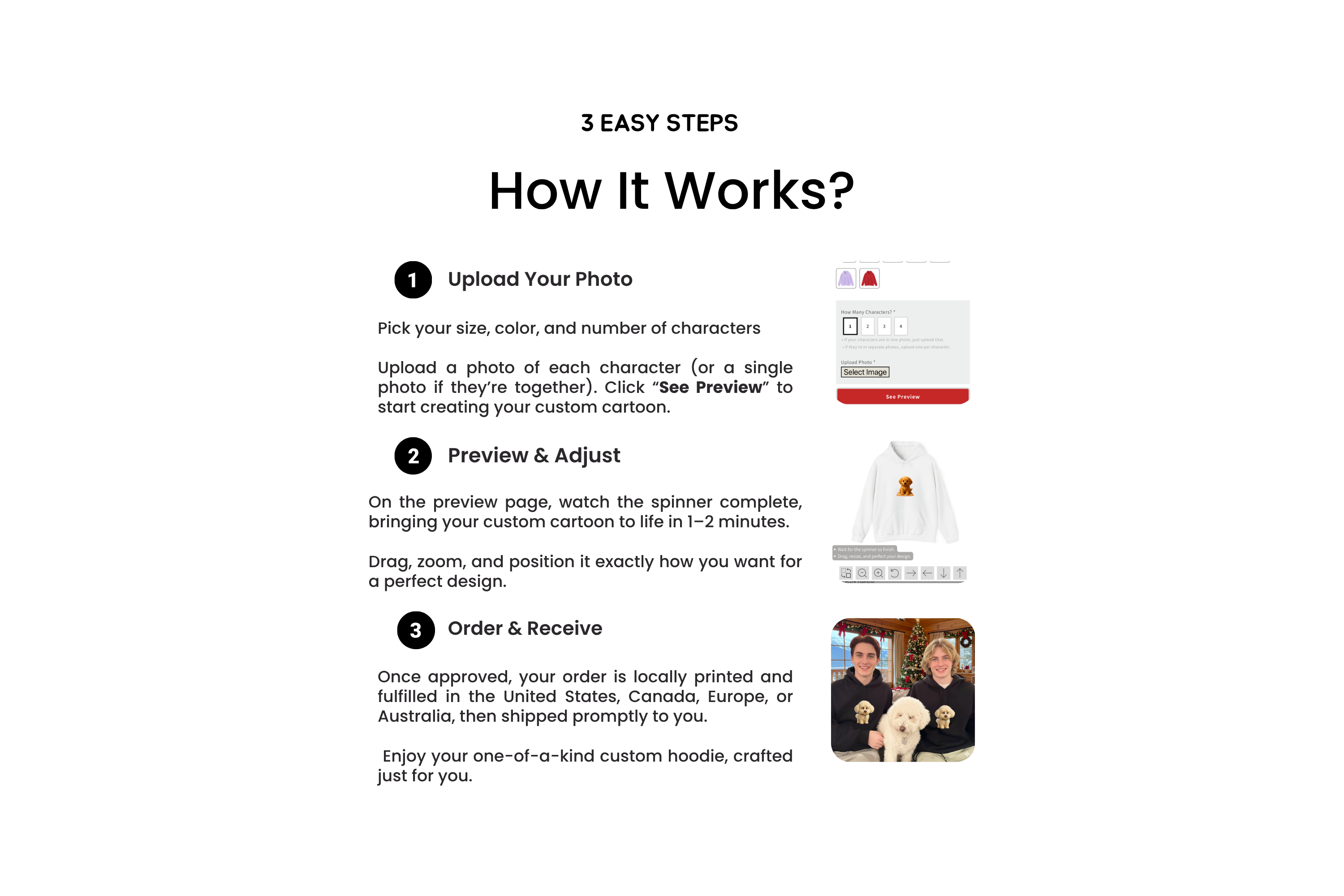 1. Upload Your Photo: Pick size, color, and number of pets.